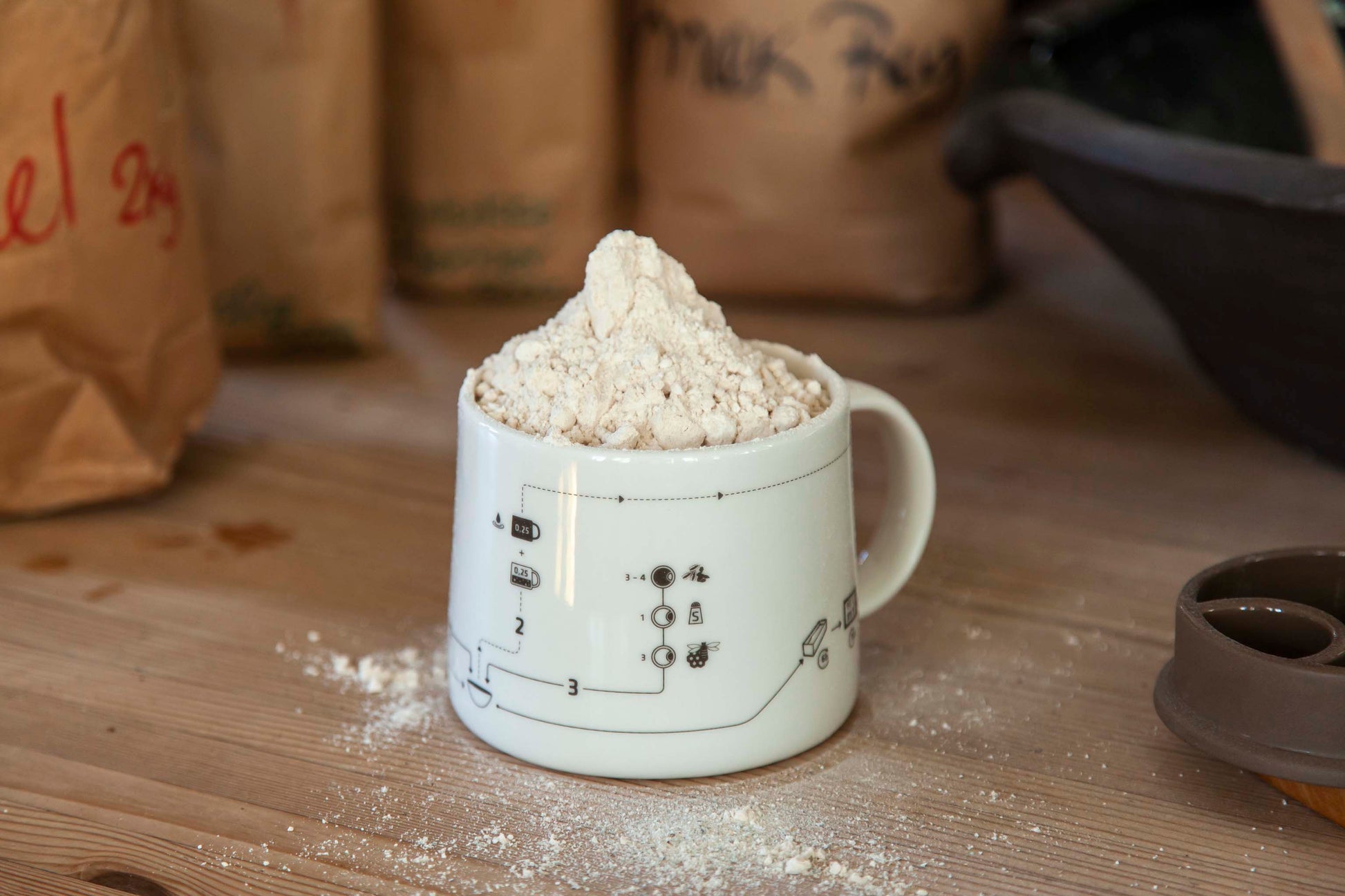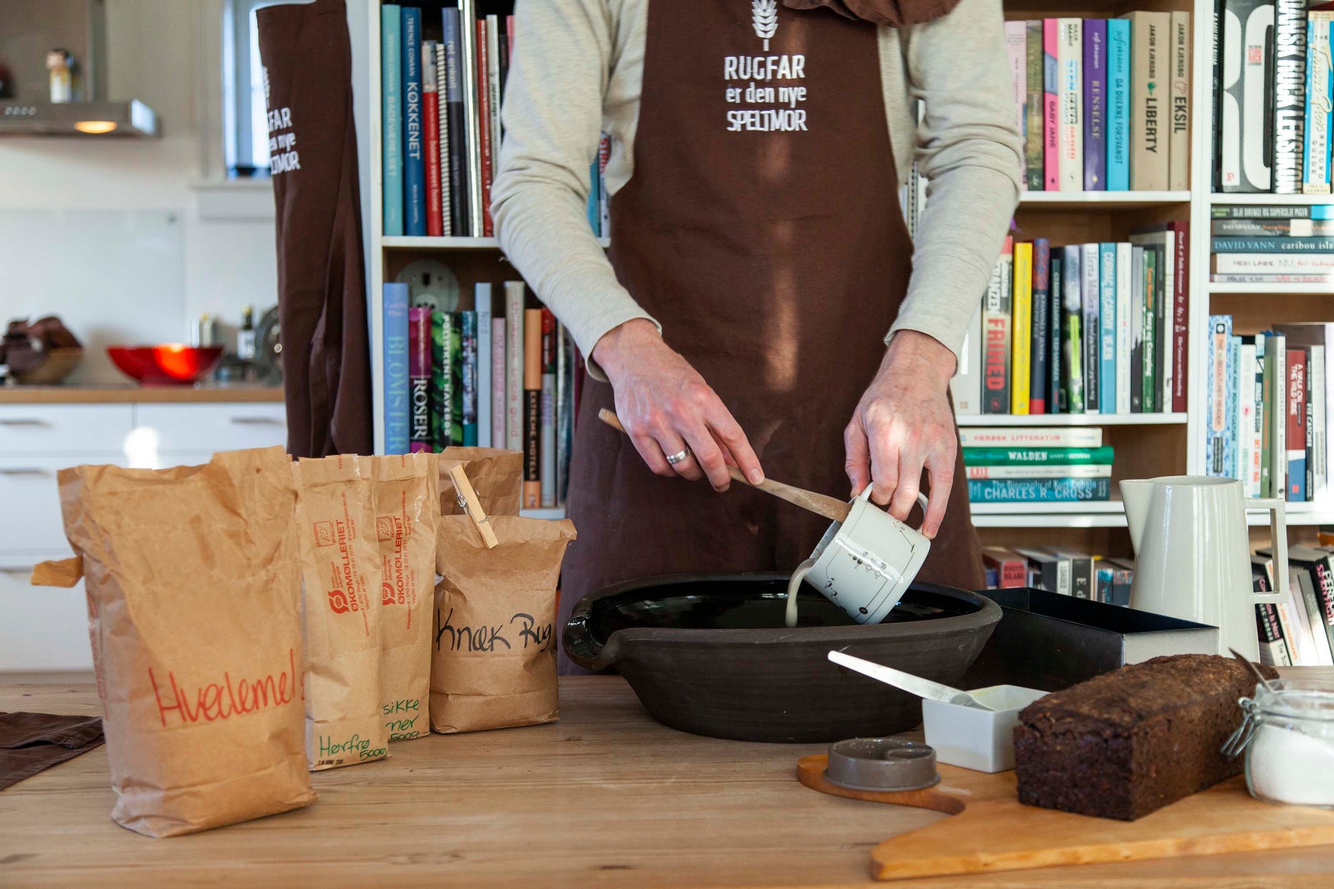 Order the RyeCup together with all the ingredients for your first 3 rye breads. All organic and freshly ground from Kragegaarden's stone mill. 1 kg rye flour, 1 kg cracked rye kernels, 1 kg wheat flour, 200g pumpkin seeds, 200g sunflower seeds and 200g linseed. (you must provide salt and syrup yourself). The starter kit helps you get started with the first 3 bakings, and then you're good to go. You can then subscribe and have our freshly ground flour delivered to your door in prepackaged flour boxes .