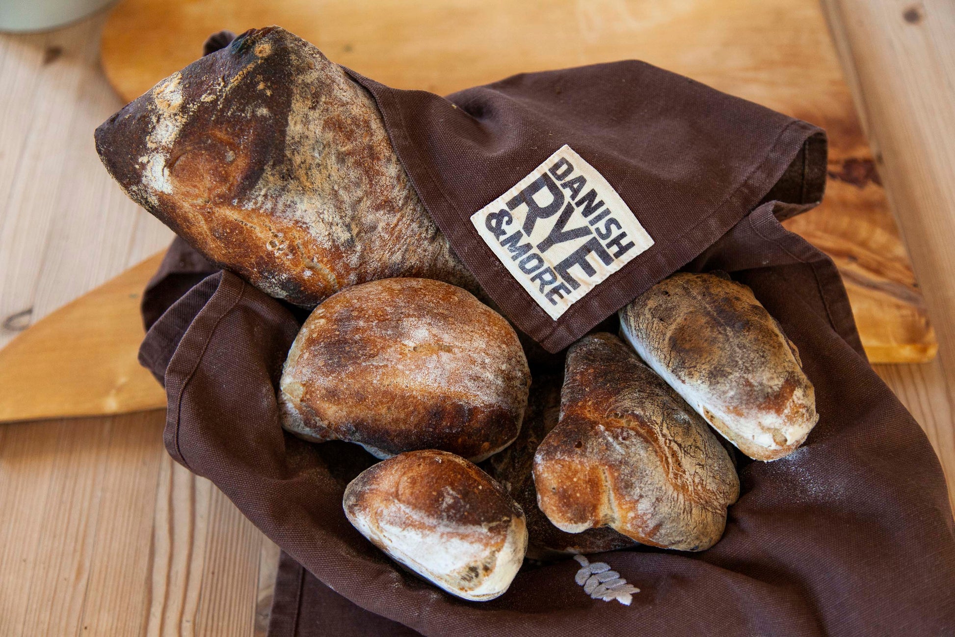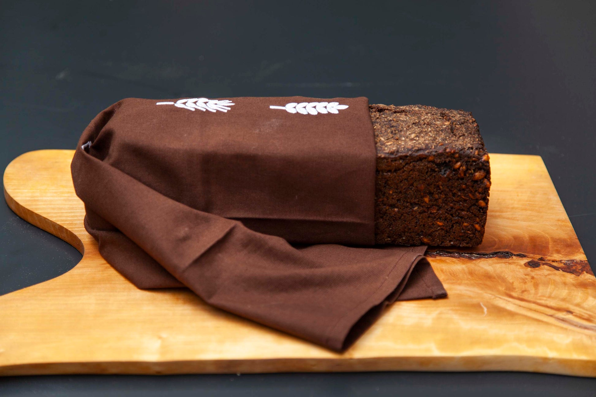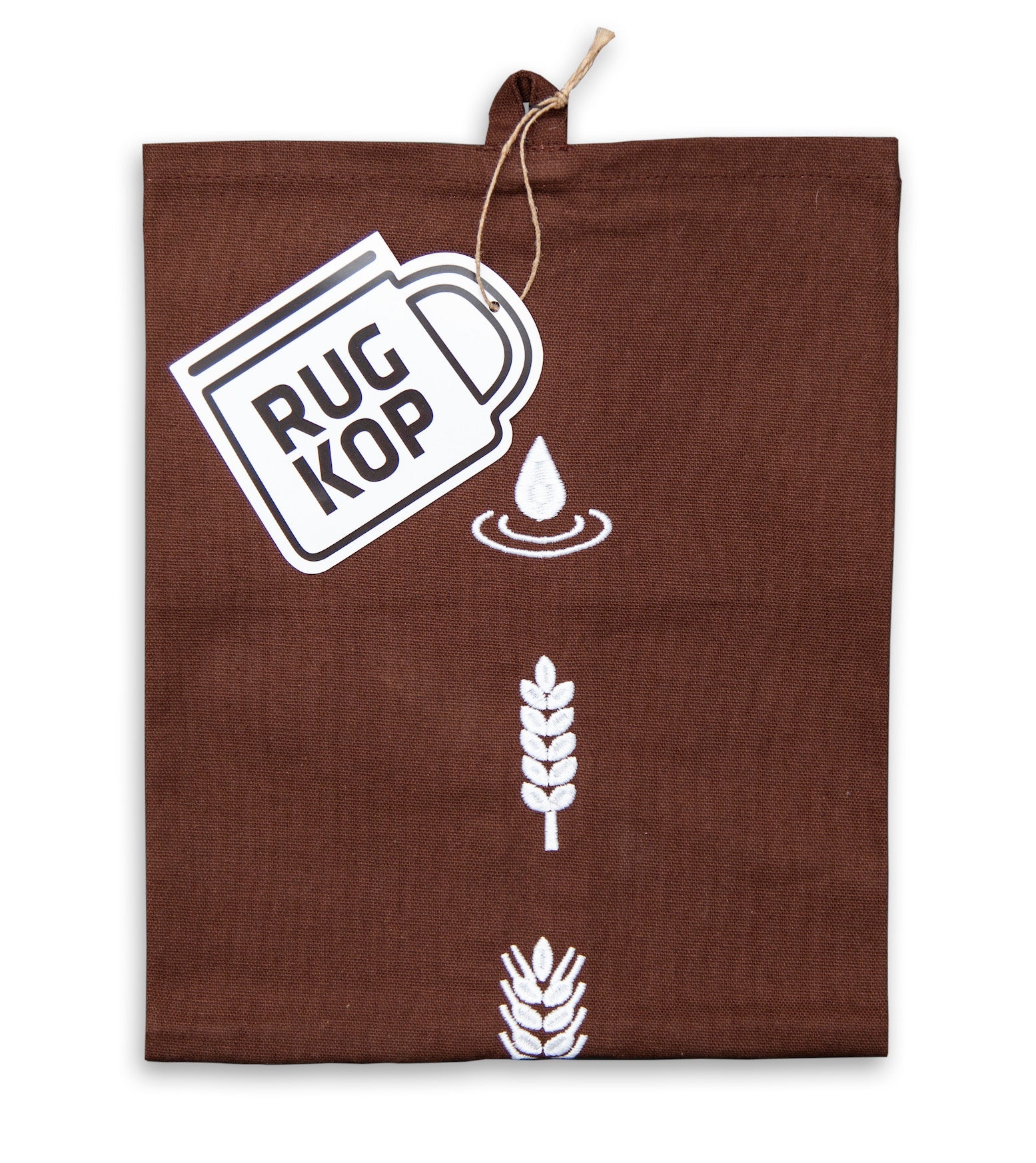 Hævestykke i økologisk bomuld med broderede ikoner. Fugtigt lægges hævestykket over bageformen, mens dejen hæver, så dejen holdes fugtig. Tørt er hævestykket perfekt til at indpakke det varme friske brød det første døgn. Der gør skorpen perfekt. Hævestykket kan også bruges til viskestykke. Mål 70x47cm.