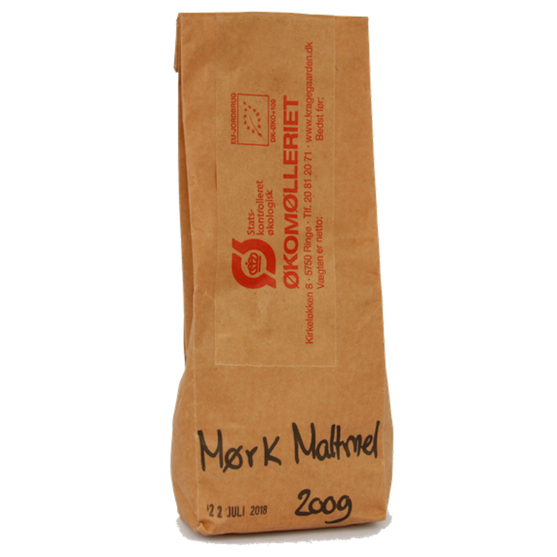 Maltmel, mørkt, af byg. Giver rugbrødet smag og farve. Økologisk